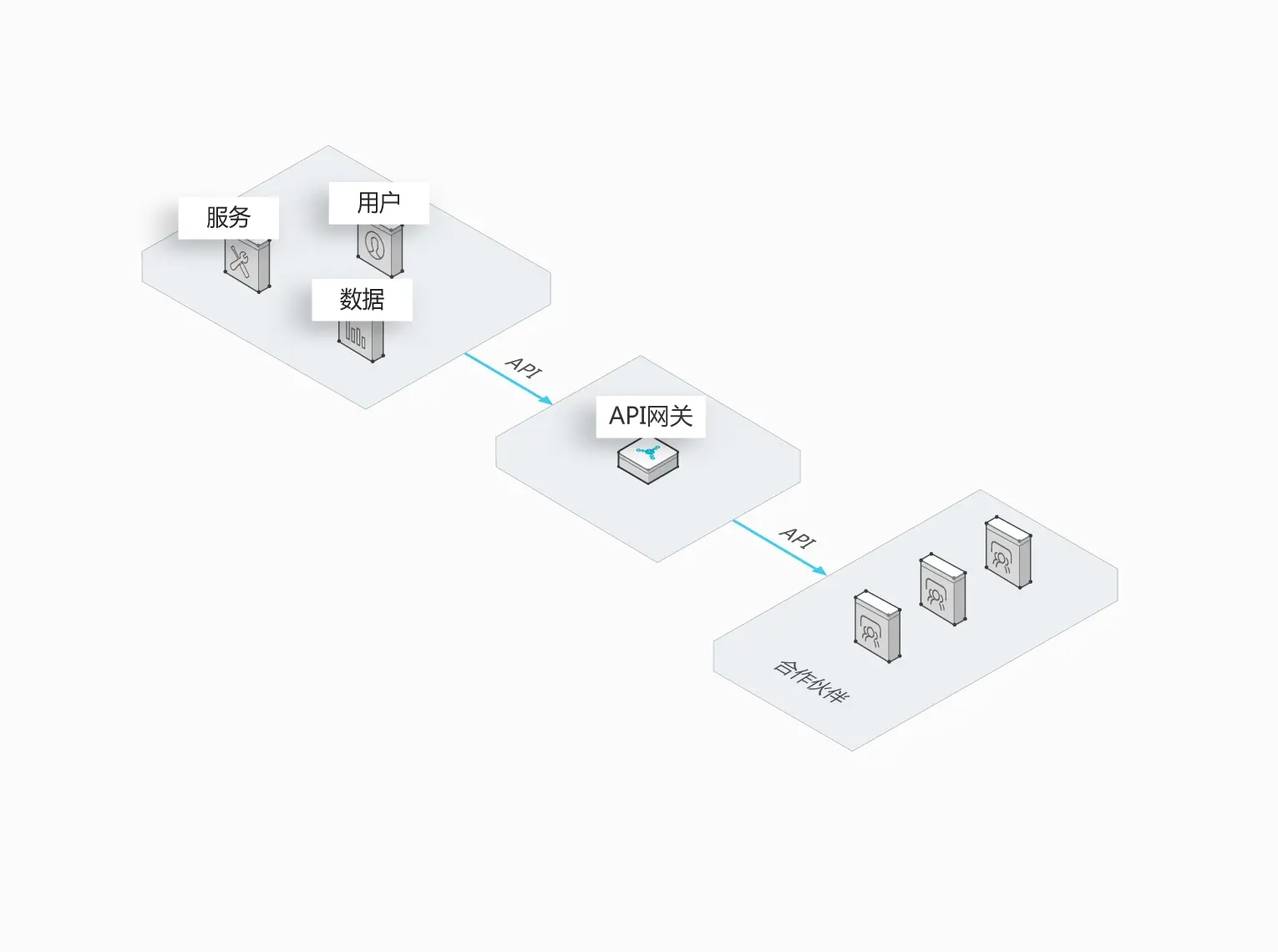 如今企业面临更多的挑战,企业发展需要可靠的合作伙伴。企业与合作伙伴以 API 的形式进行服务、能力和数据的交互,系统与系统直接对接,达成深度合作,建立牢固的合作关系。