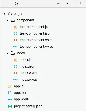 js : 负责组件的逻辑。 json: 负责定义组件的配置。 wxml: 负责定义组件的布局。 wxss: 负责组件的样式。