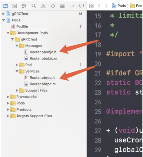 为了能够使用gRPC框架,iOS工程必须继承CocoaPods,gRPC利用CocoaPods的特性,将提前定义好的,包含了服务和API的.proto文件,生成对应的object-c函数,使其可以直接调用