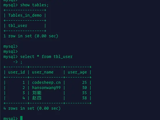 准备好数据库和数据表并插入相应的数据(MySQL)