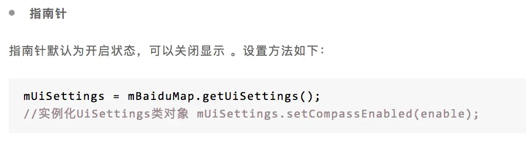 那么,会不会和定位有关系呢?毕竟我之前的项目都是和定位相关。emmm不知道是我没找到还是咋的,百度官方在定位的文档斌没有提到指南针问题。毕竟这不是导航,没有指南针也是无可厚非嘛。