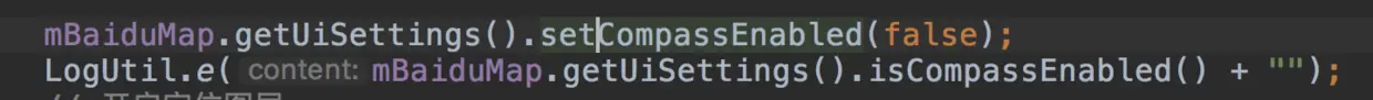 在尝试了N种搭配以后,通过不断打印mBaiduMap.getUiSettings().isCompassEnabled()以后,我发现的确,默认指南针都是开启的,那么我就先把它关掉试试:
