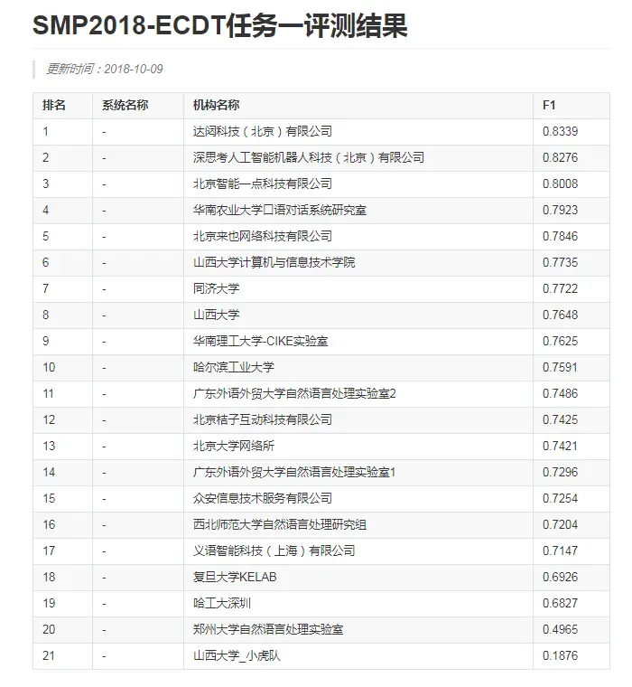 | SMP2018-ECDT评测成绩公告链接 |