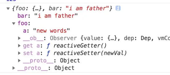 this.fonnB="new words"; // 这种跟新,仅仅foonB变化了,foo没有变化