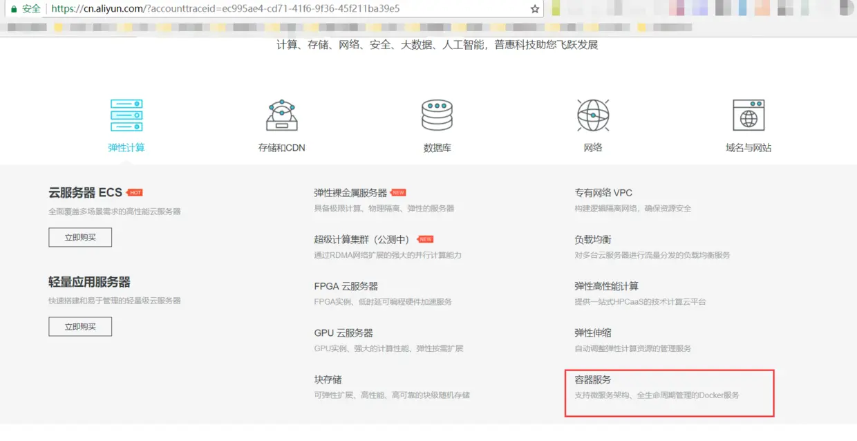 进入首页:cn.aliyun.com 往下拉选择「容器服务」