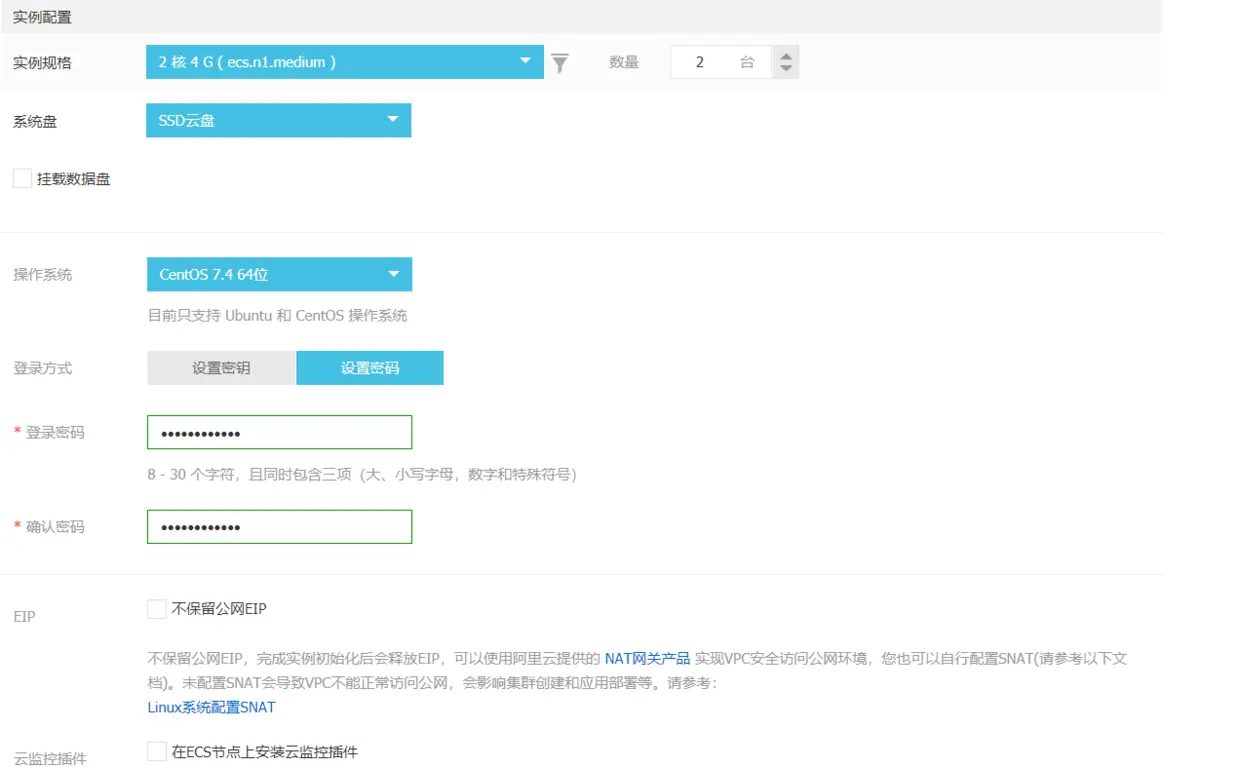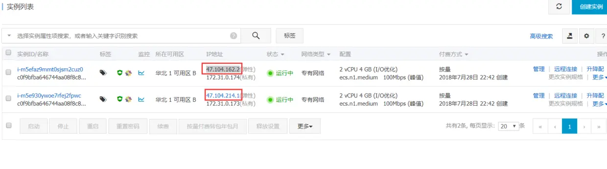 - 阿里云创建了2个节点