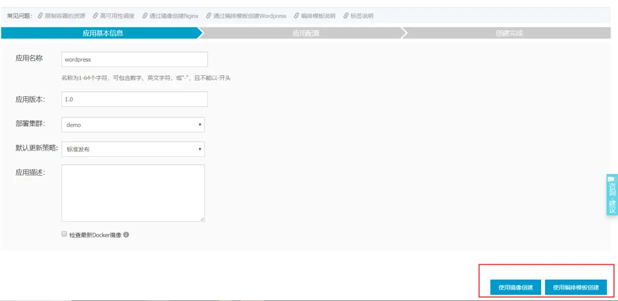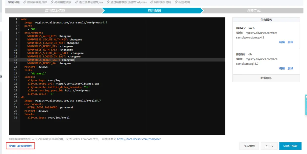 使用排版模板创建:就是docker-compose的方式创建,但是只支持compose2.0