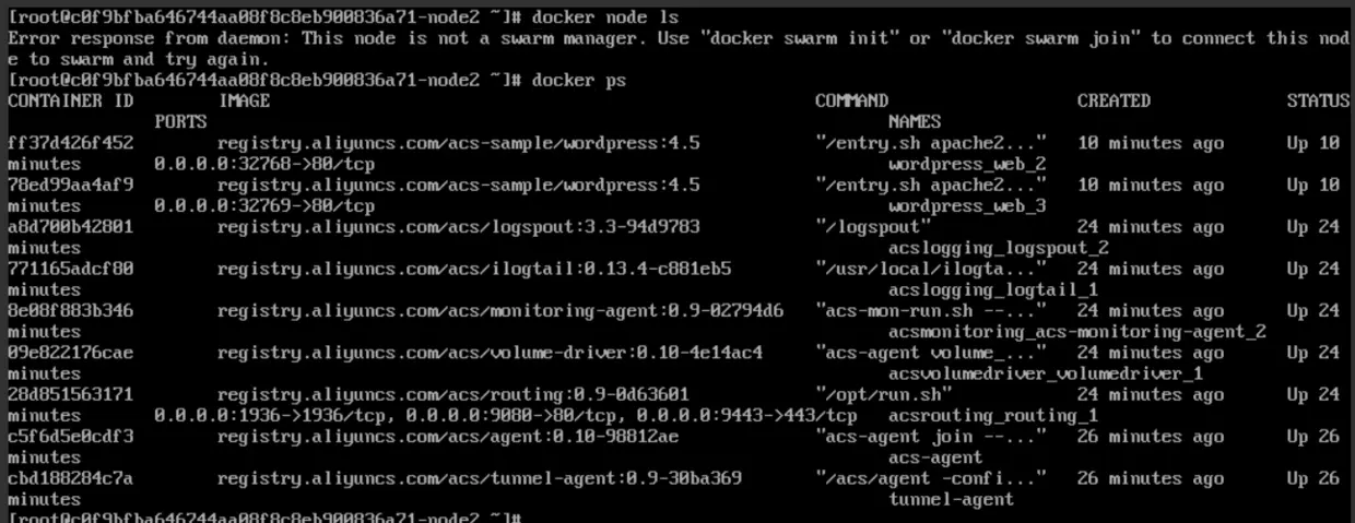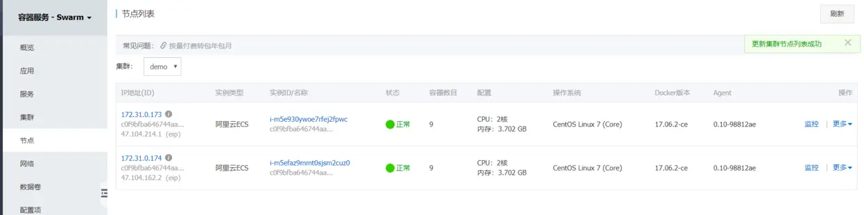 发现一个问题,其实阿里云帮我们管理了2个节点,而没有使用swarm,虽然现实的有swarm,其实都没用起来swarm。