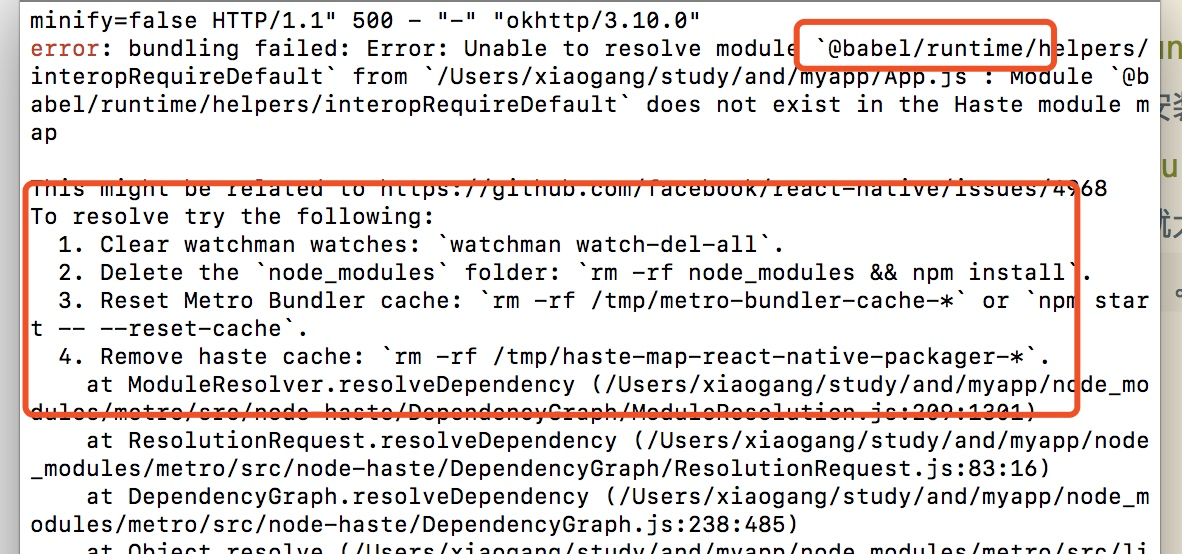 react-transform-hmr找不到的错误,各种查找后,发现,目前0.57.1是成功的。于是:react-native init --version="0.57.1" myapp cd myapp && react-native run-android