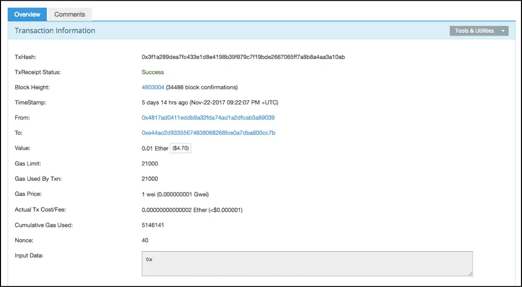 实际上,正如你所看到的,在0.01以太的此次交易中,仅收取0.00000000000002以太的gas作为交易费用<$0.000001。