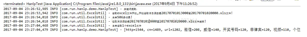 public static void main(String[] args) { log.info("关键词提取:"); HanlpTest.getWordAndFrequency(); } /** * 获取所有关键词和频率 / public static void getWordAndFrequency() { // String content = // "程序员(英文Programmer)是从事程序开发、维护的专业人员。一般将程序员分为程序设计人员和程序编码人员,但两者的界限并不非常清楚,特别是在中国。软件从业人员分为初级程序员、高级程序员、系统分析员和项目经理四大类。"; List<Map<String, Integer>> content = ExcelUtil.readExcelByField("i:/rundata/excelinput",5000,5); Map<String, Integer> allKeyWords=new HashMap<>(); for(int i=0;i<content.size();i++){ Map<String, Integer> oneMap=content.get(i); for(String str:oneMap.keySet()){ int count = oneMap.get(str); CombinerKeyNum(str,count,allKeyWords); } } List<Map.Entry<String,Integer>> sortedMap=sortMapByValue(allKeyWords); log.info(sortedMap); } /* * * @param allKeyWords 需要进行排序的map * @return 返回排序后的list / public static List<Map.Entry<String,Integer>> sortMapByValue(Map<String,Integer> allKeyWords){ List<Map.Entry<String,Integer>> sortList=new ArrayList<>(allKeyWords.entrySet()); Collections.sort(sortList, new Comparator<Map.Entry<String, Integer>>() { public int compare(Map.Entry<String, Integer> o1, Map.Entry<String, Integer> o2) { return (o2.getValue() - o1.getValue()); } }); return sortList; } /* * * @param key 关键词变量 * @param value 关键词词频变量 * @param allKeyWords 存放关键词和词频的map / public static void CombinerKeyNum(String key,int value,Map<String,Integer> allKeyWords){ if(allKeyWords.containsKey(key)){ int count=allKeyWords.get(key); count+=value; allKeyWords.put(key, count); }else{ allKeyWords.put(key, value); } } /* * * @param content 需要提取关键词的字符串变量 * @return 返回关键词以及关键词词频数的map * */ public static HashMap<String, Integer> getKeyWordMap(String content) { List list = StandardTokenizer.SEGMENT.seg(content); TextRankKeyword textmap = new TextRankKeyword(); Map<String, Float> map = textmap.getTermAndRank(content); Map<String, Integer> mapCount = new HashMap<>(); for (String str : map.keySet()) { String keyStr = str; int count = 0; for (int i = 0; i < list.size(); i++) { if (keyStr.equals(list.get(i).word)) { count++; } } mapCount.put(keyStr, Integer.valueOf(count)); } // log.info(mapCount); return (HashMap<String, Integer>) mapCount; }