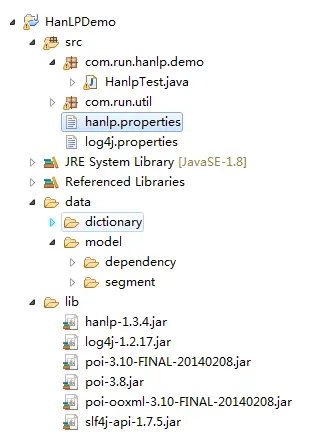 hanlp是由jar包、properties文件和data数据模型组成,因此,在安装时,这三种文件都应该有。可以通过建立java工程即可运行。