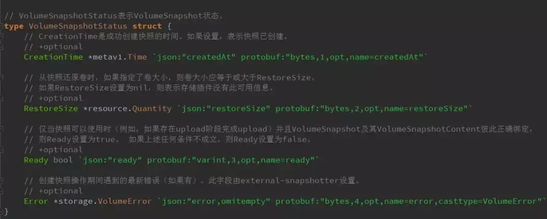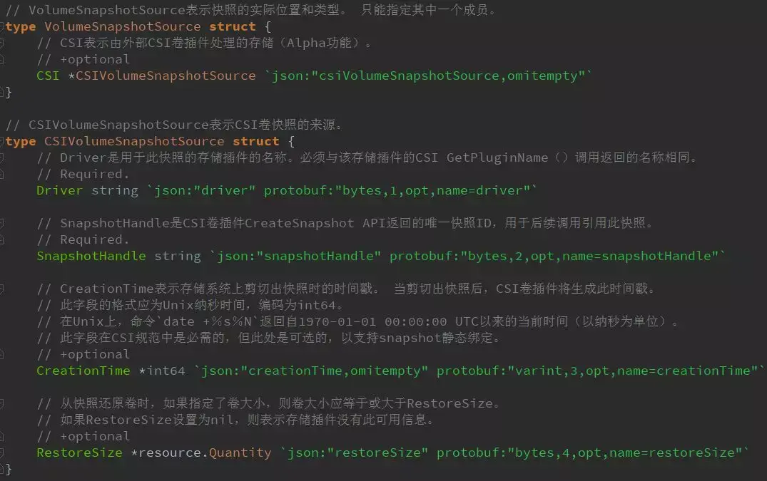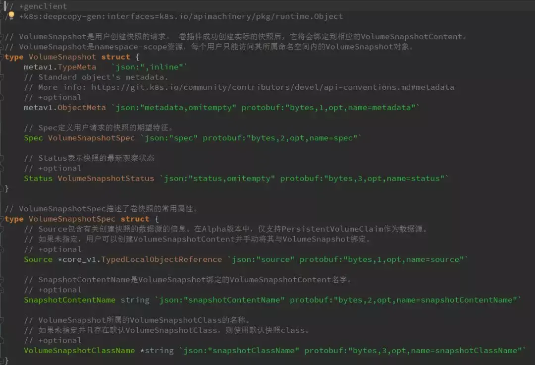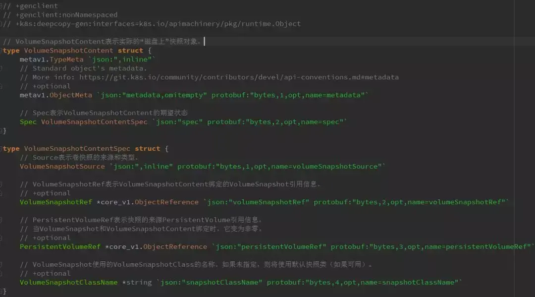 三个 API,它们与 PersistentVolumeClaim 和 PersistentVolume 以及 storageClass 的结构类似。外部快照控制器的功能类似于 in-tree 的 PV 控制器。同时建议在 PersistentVolumeClaim(PVC)API 中添加新的数据源结构,以支持从快照还原数据卷。 以下部分将详细介绍 API 和控制器设计。