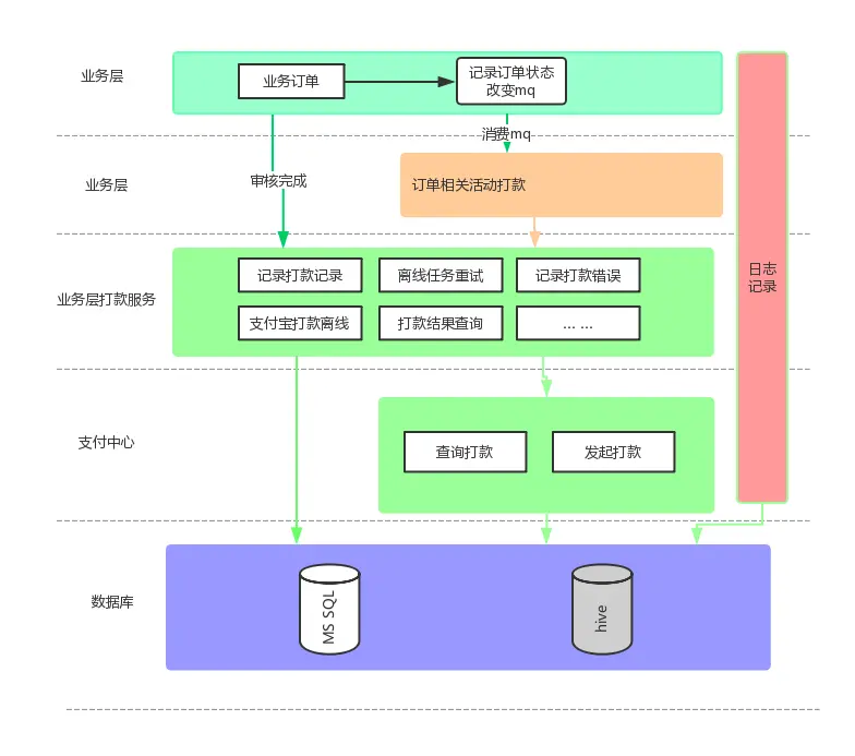 为了配合业务发展,会增加各种活动来拉动订单量,有些活动有打款需求,因为业务处于快速发展期,实现方案都是在业务订单向支付中心发起调用后,把与订单有关的活动打款也向支付发起调用。待打款都成功后,再分别将业务订单和活动的状态置为打款成功。