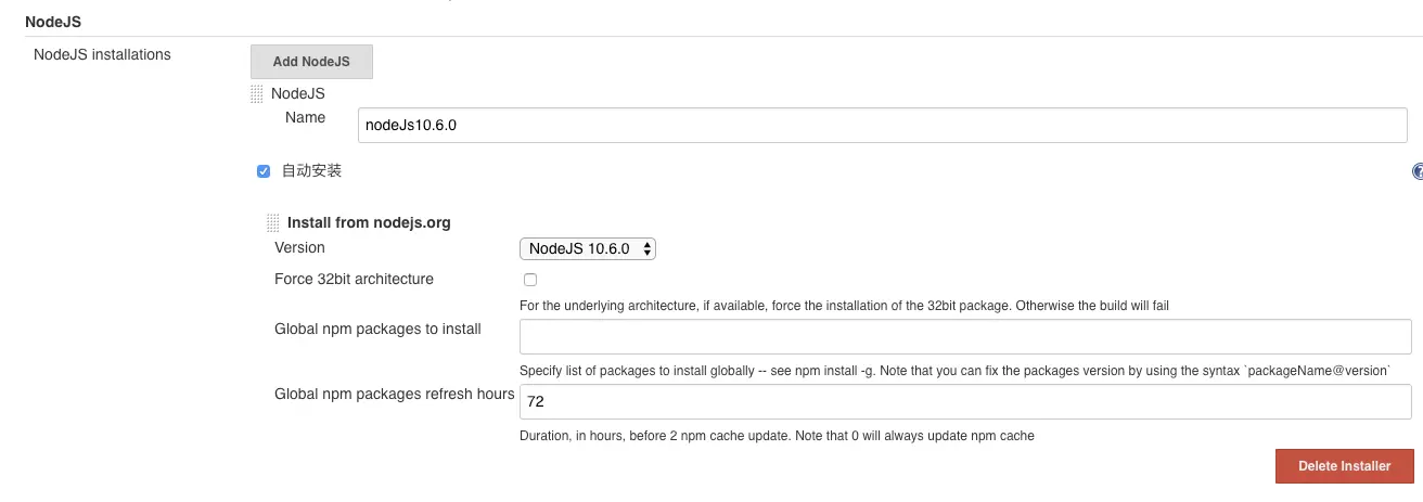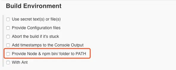 添加Node环境,前端项目打包命令,需要依赖Node环境。安装好之后,Build Environment 会出现