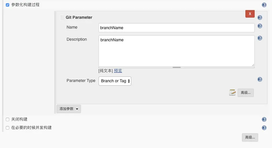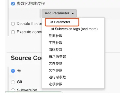 通过这个插件jenkins可以选择任意一个branch来构建代码。在配置任务 General 》 参数化构建 的下拉框中,在安装这个插件之后会出现 Git Parameter 选项