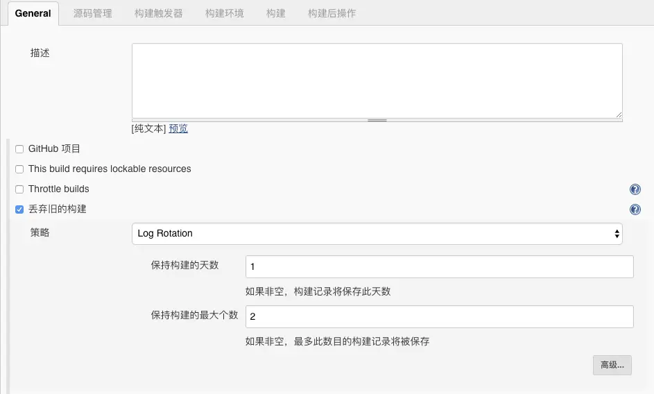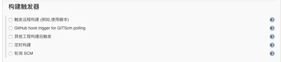 这个我并没有配置,后面的测试会通过Jenkins直接进行Build,你可以根据你的需要选择合适的触发器
