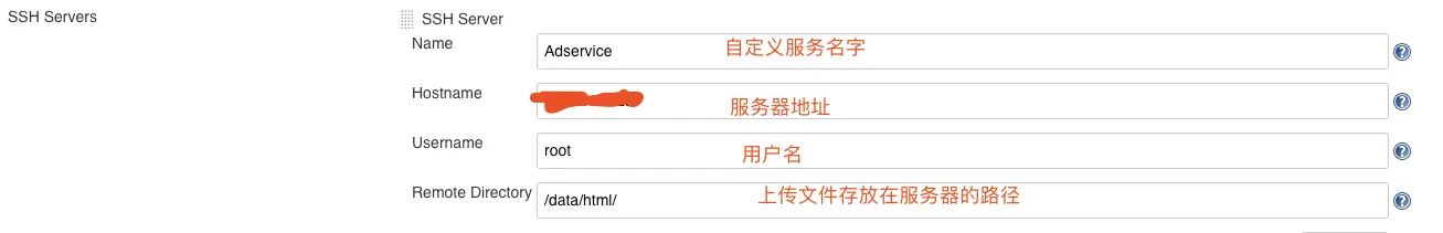- Publish Over SSH 将打包好的文件上传到服务器,配置上传成功之后要执行的命令。安装完成后会出现在Post-build Actions(构建后操作)