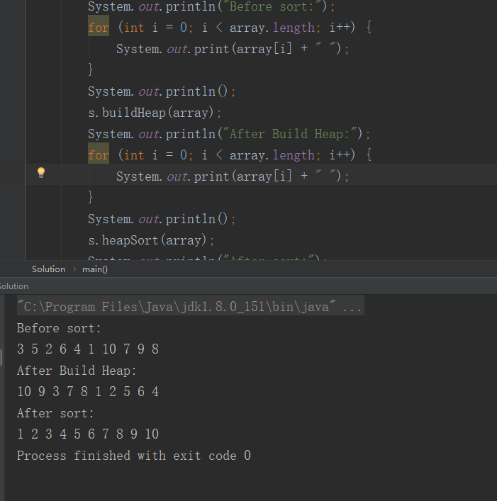 最后便是堆排序的代码: