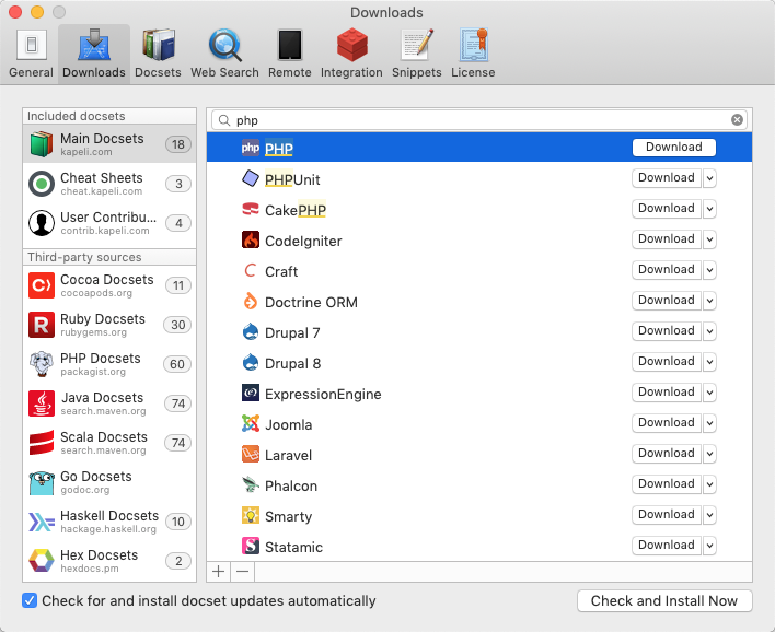 笔者刚接触php没多久,在dash中下载了一个php的文档,只有英文版的,php作为比较流行的脚本语言,文档官网提供了多种语言版本,本来自己想在网上下载别人制作好的php中文文档for dash,可下载下来的几个,看了一下都不太满意,本人有点完美主义,于是萌发了自己动手制作一个双语版的。