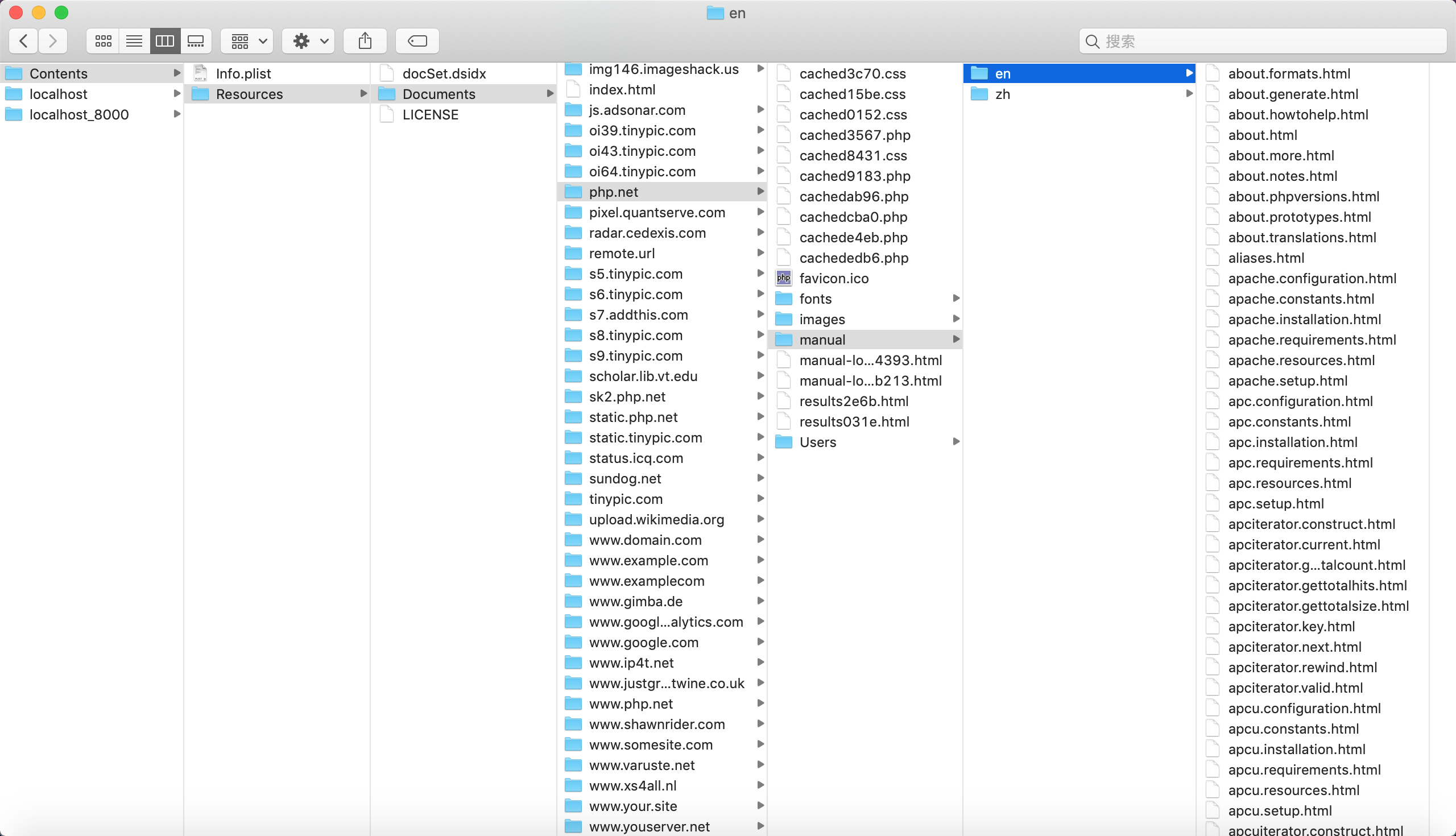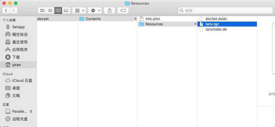 继续解压tarix.tgz,又得到一个PHP.docset,这难道是俄罗斯套娃吗,继续显示包内容,上图看一下目录层次的结构
