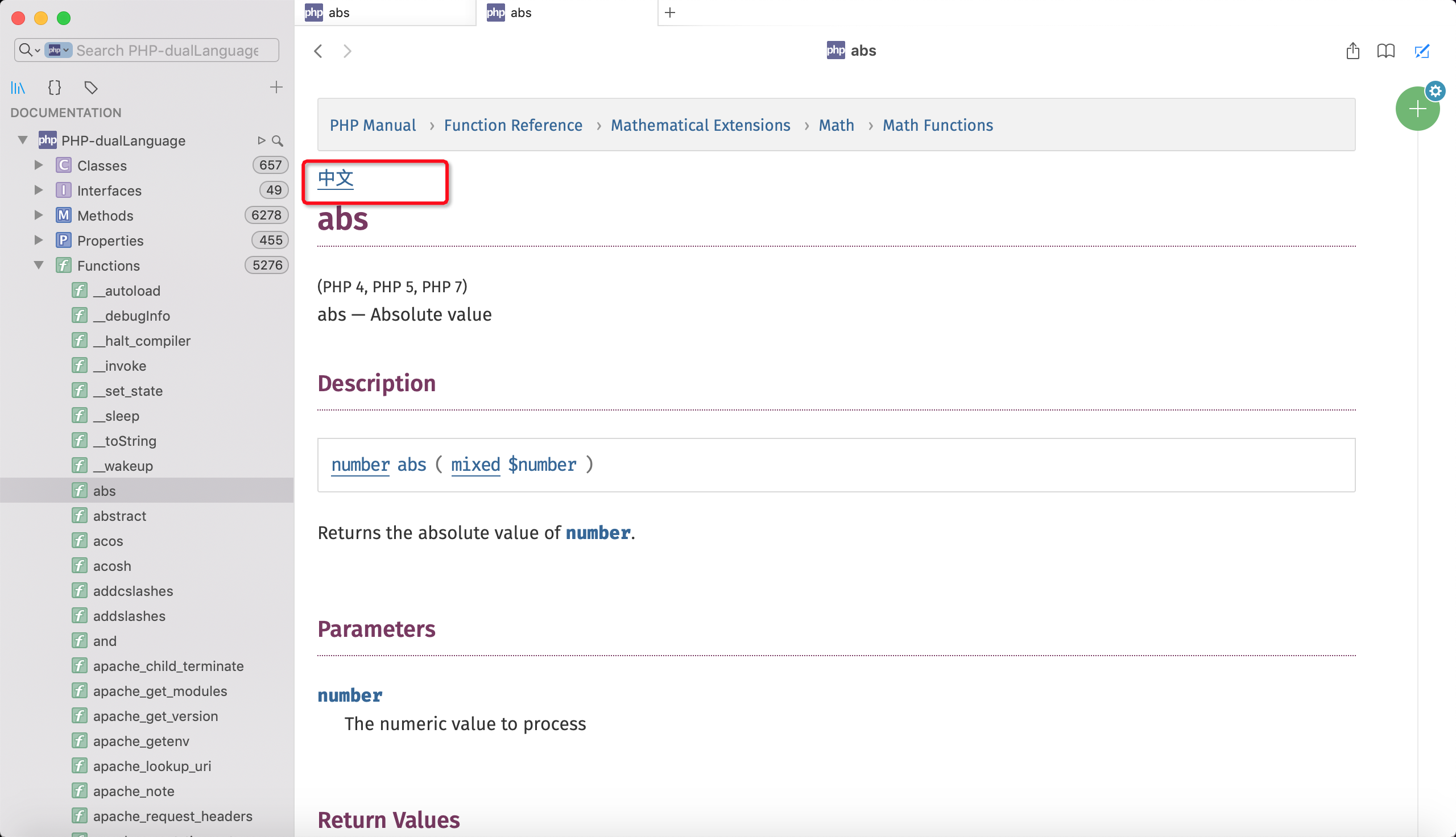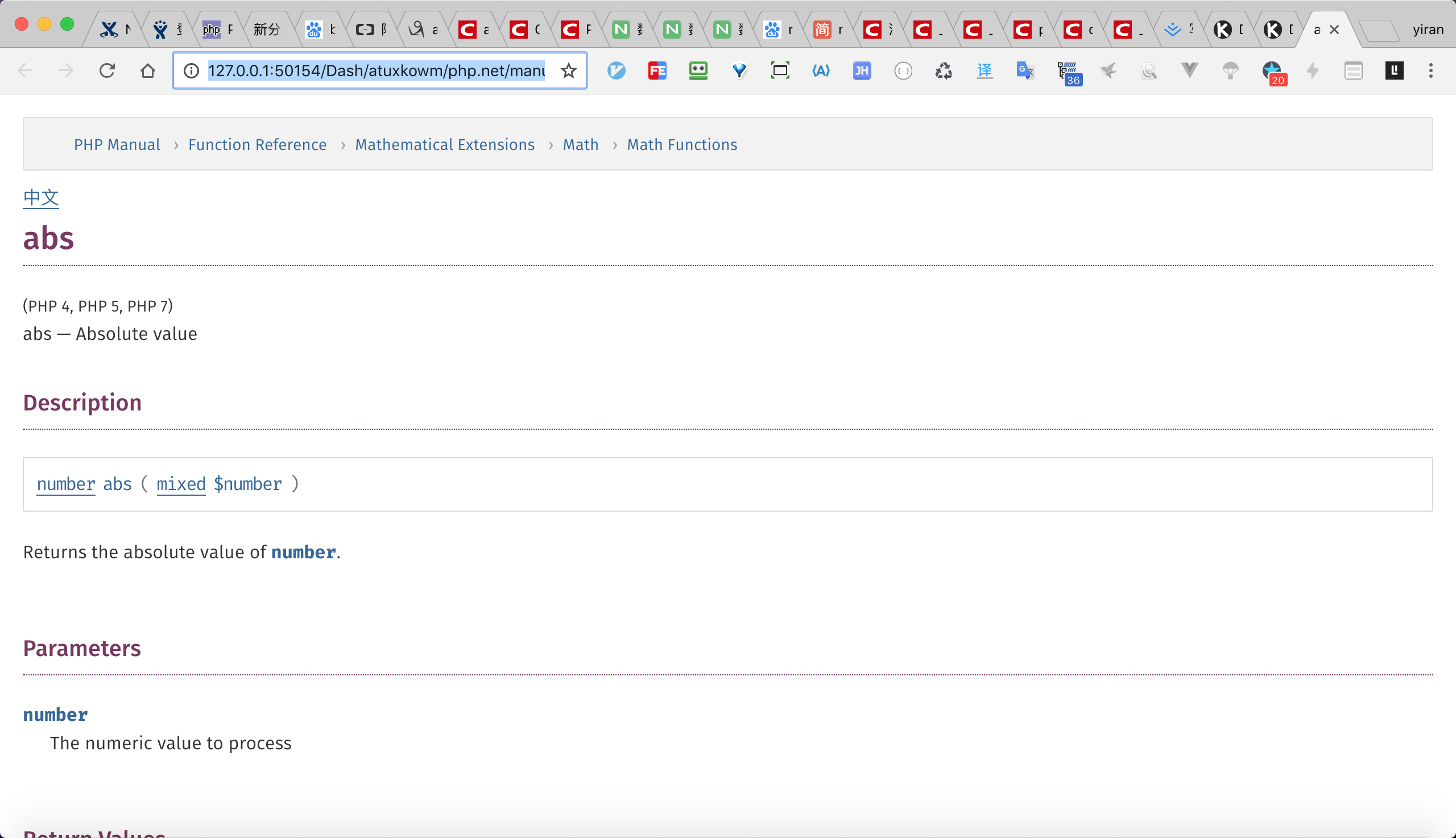 也可以在浏览器中打开页面:http://127.0.0.1:50154/Dash/atuxkowm/php.net/manual/en/function.abs.html