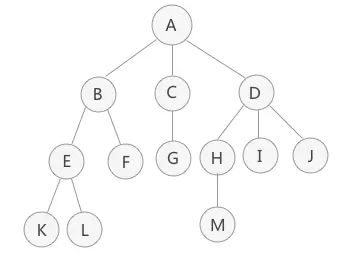 叶子结点:如果结点没有任何子结点,那么此结点为叶子结点。例如(K、L、F、G、M、I、J)