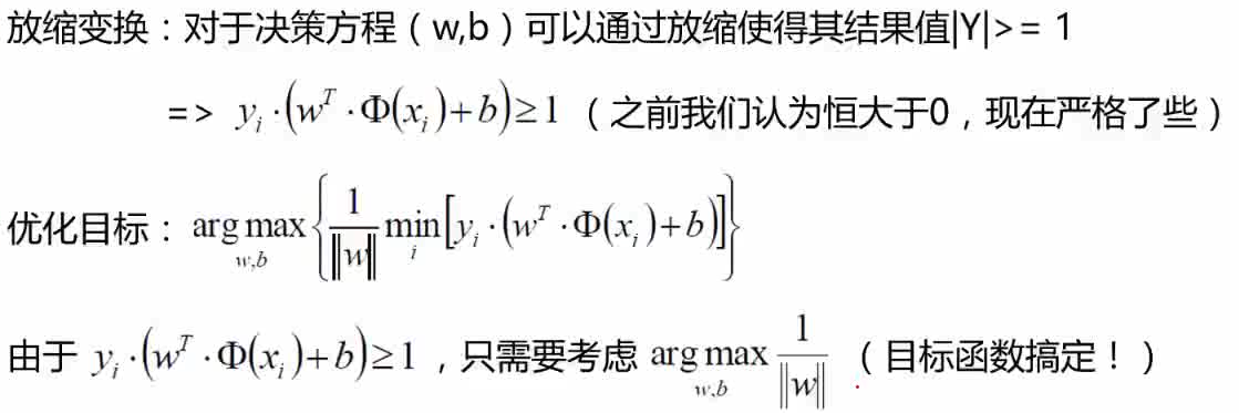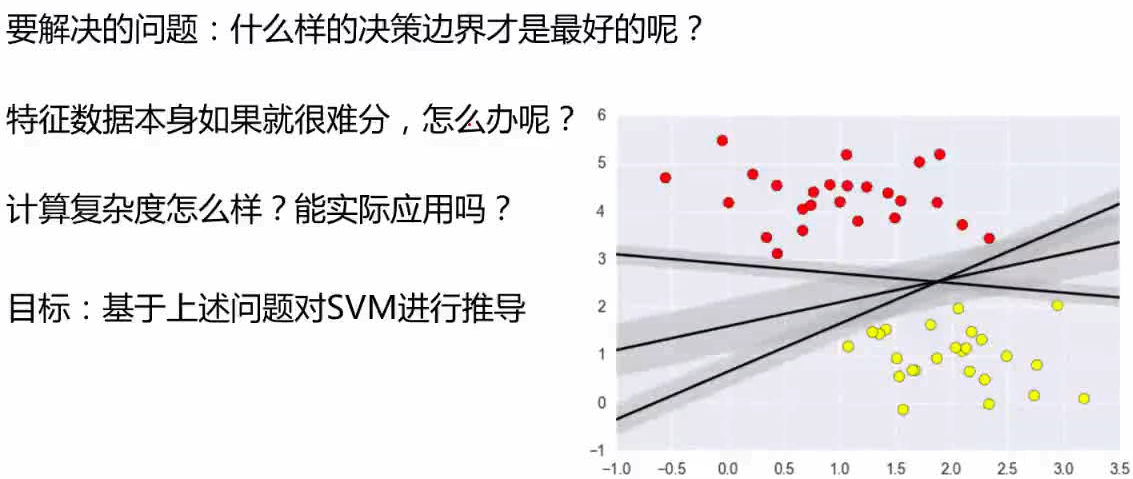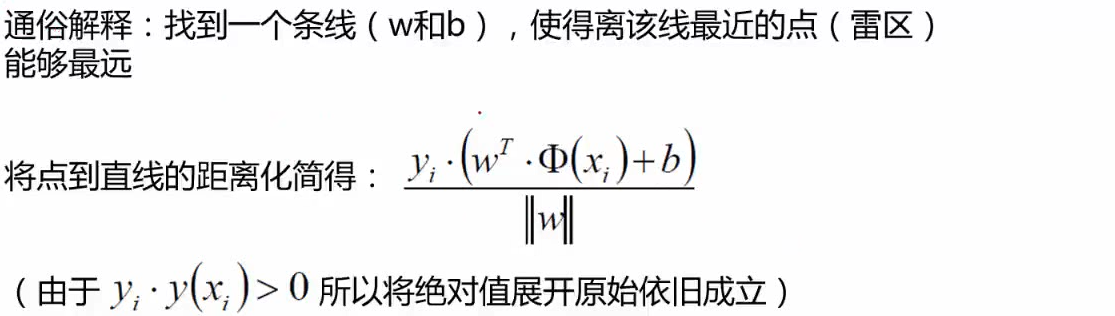 靠近决策平边界的点(正负样本)与决策边界的距离最大时,是最好的分类选择。决定决策边界的样本点叫做支持向量,它决定了与决策边界的距离到底是多少,而与决策边界的距离更远的点,其实有没有无所谓。