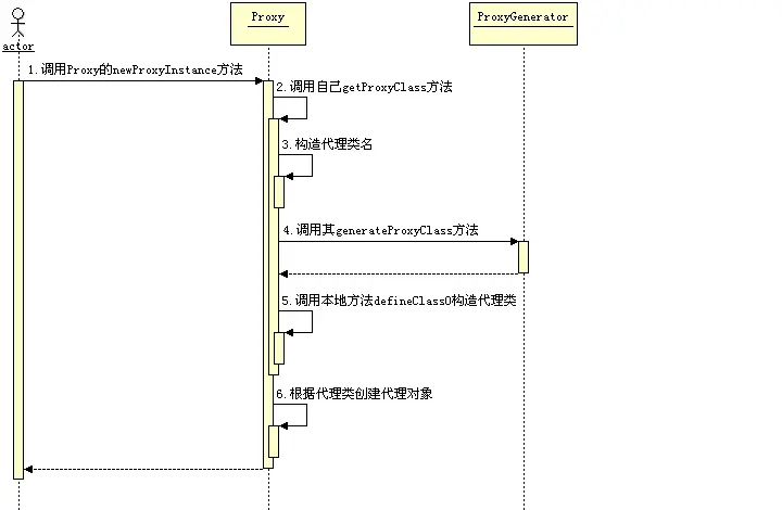 这个方法要有三个参数:ClassLoader用于加载代理类的Loader 类,通常这个Loader和被代理的类是同一个Loader类。Interfaces 是被代理的哪些接口;InvocationHandler就是用于执行除了被代理接口中方法外的用户自定义的操作,它也是用户需要代理的最终目的。用户调用目标方法都被代理到InvocationHandler 类中定义的唯一方法invoke中。这在后面再详解。