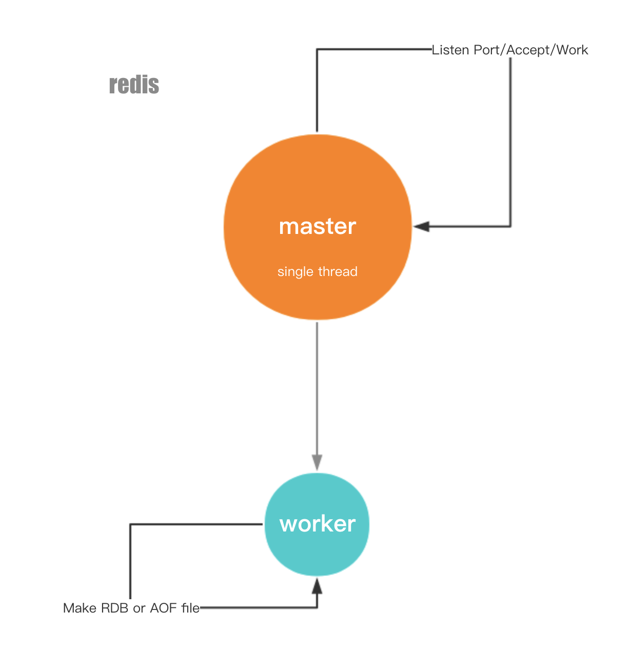 但是,redis需要实现持久化,持久化的方式一般有两种RDB(写快照)/AOF(写命令),持久化的过程redis会fork一个子进程来完成,目的不阻塞master工作进程。如下图所示: