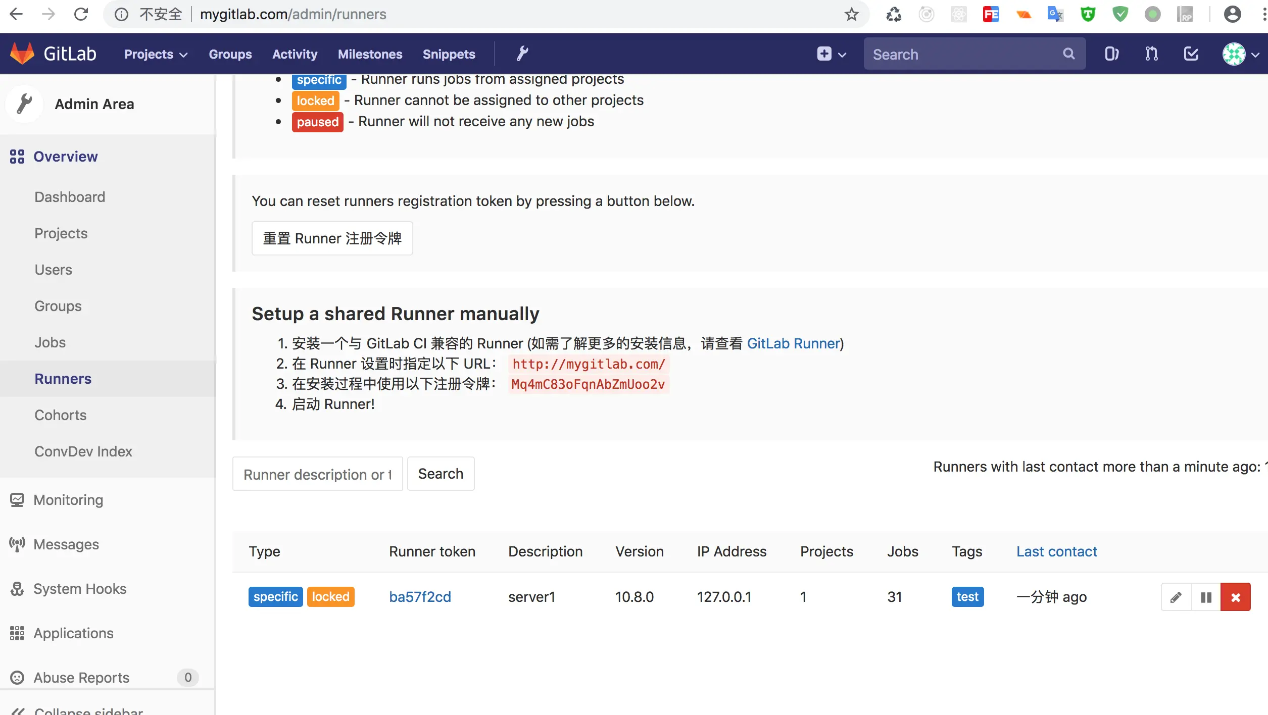 看Setup a shared Runner manually这段,你就应该知道怎么注册runner到gitlab中了。