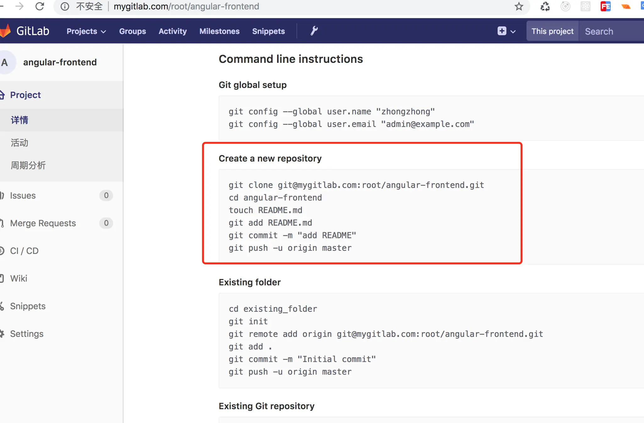 git remote add origin http://mygitlab.com:root/angular-frontend.git