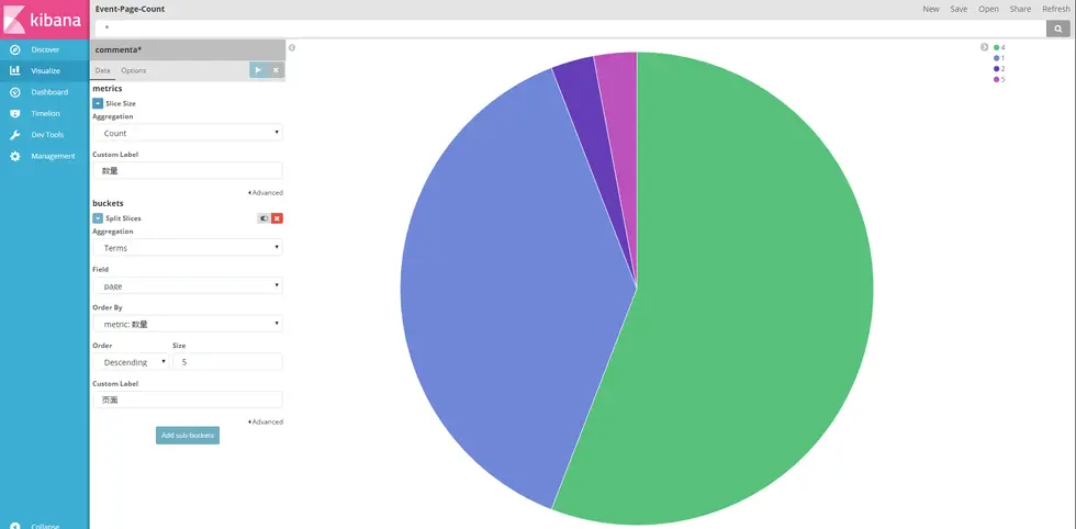 至此,ELK已经搭建完成,并提供一些简单的功能。 但是有一些统计Kibana是做不了的。这时候我们程序需要处理一下。