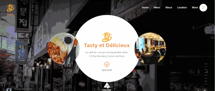 该款餐厅类响应式HTML网页设计,通过创意的着陆页设计,文本与视频的巧妙结合,高清背景图的添加,黑白配色的选择等等,为用户展示了一个极富特色的在线餐厅,让人忍不住想要点击,了解更多。而且,其渐进式的导航设计,在用户需要时,即可点击,了解更多的餐厅详情,也是非常人性化的设计。