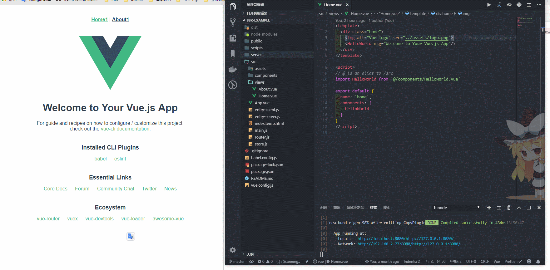通过上一篇 通过vue-cli3构建一个SSR应用程序 和这篇文章,我们一步一步搭建起了基于vue-cli3的一个ssr应用程序,并添加了热更新的功能,在这期间也踩了很多坑。但是最终实现了之后,你会觉得这些付出都是值得的,因为这些都是为自己的成长奠定基础。