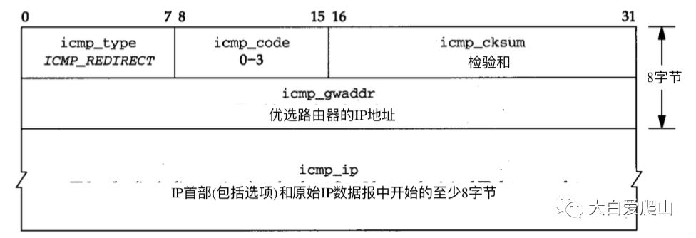 icmp_type、icmp_code、icmp_gwaddr(用于重定向)、icmp_pptr(用于参数问题)和icmp_nextmtu(用于要求分片报文)被初始化。
