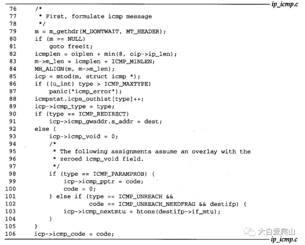 58~75 icps_error统计除重定向报文以外的所有ICMP差错。Net/3不把重定向报文看作错误。