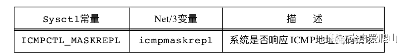 如果全局整数icmpmaskrepl非零,Net/3会响应地址掩码请求。icmpmaskrepl的默认值是0,icmp_sysctl可以通过sysctl(8)程序修改它。