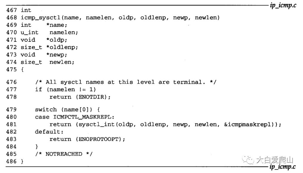 468~478 如果缺少所要求的ICMP sysctl名,就返回ENOTDIR。