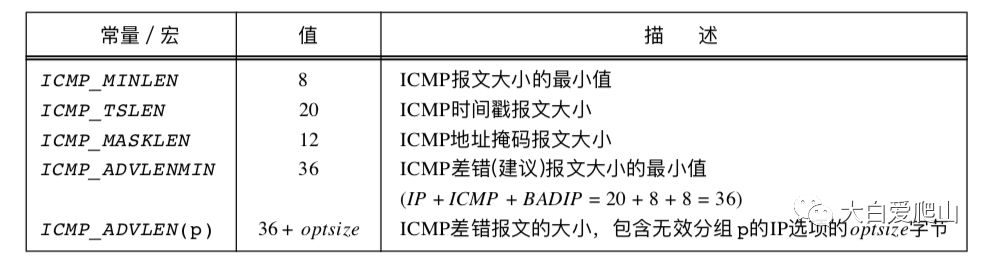 135~139 icmp_input中参数m是指向一个ICMP数据报的指针,hlen是该数据报IP首部的字节长度。图12列出了几个在icmp_input里用于简化检测无效ICMP报文的常量。