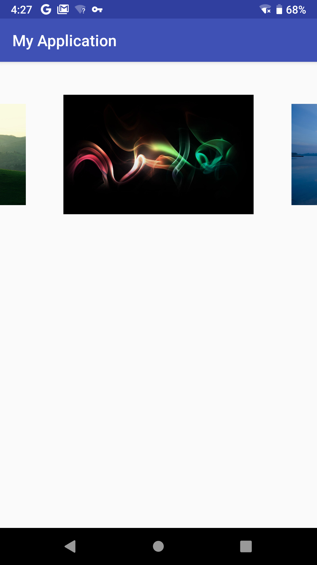 上面例子在实践过程中发现无法修复bug,是因为在MyGallyPageTransformer中缩放两边大小时,同时也对两边与中间之间的空间进行了加大,而且缩放值越小,则中间图片距离左右两边图片之间的空白越大。这样非常不利于自己设定view左右两边间距。对两边缩放大小也有局限性。