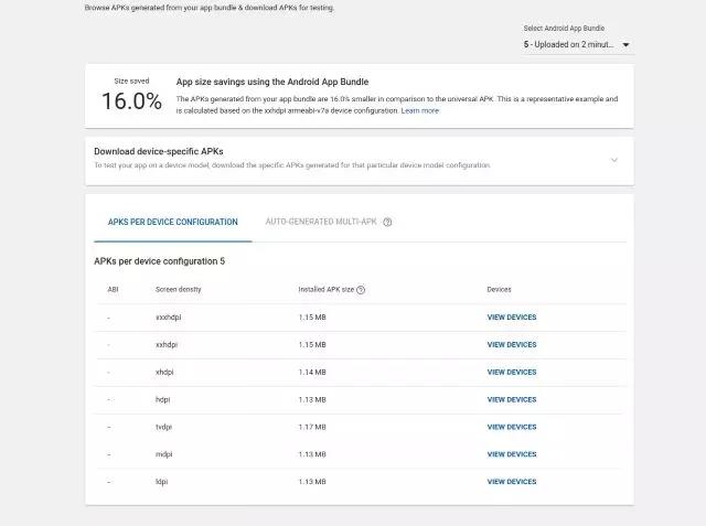 安装早于 Android Lollipop 版本的设备也可以享受安装文件体积缩小的福利,但其 APK 中将包含所有语言。