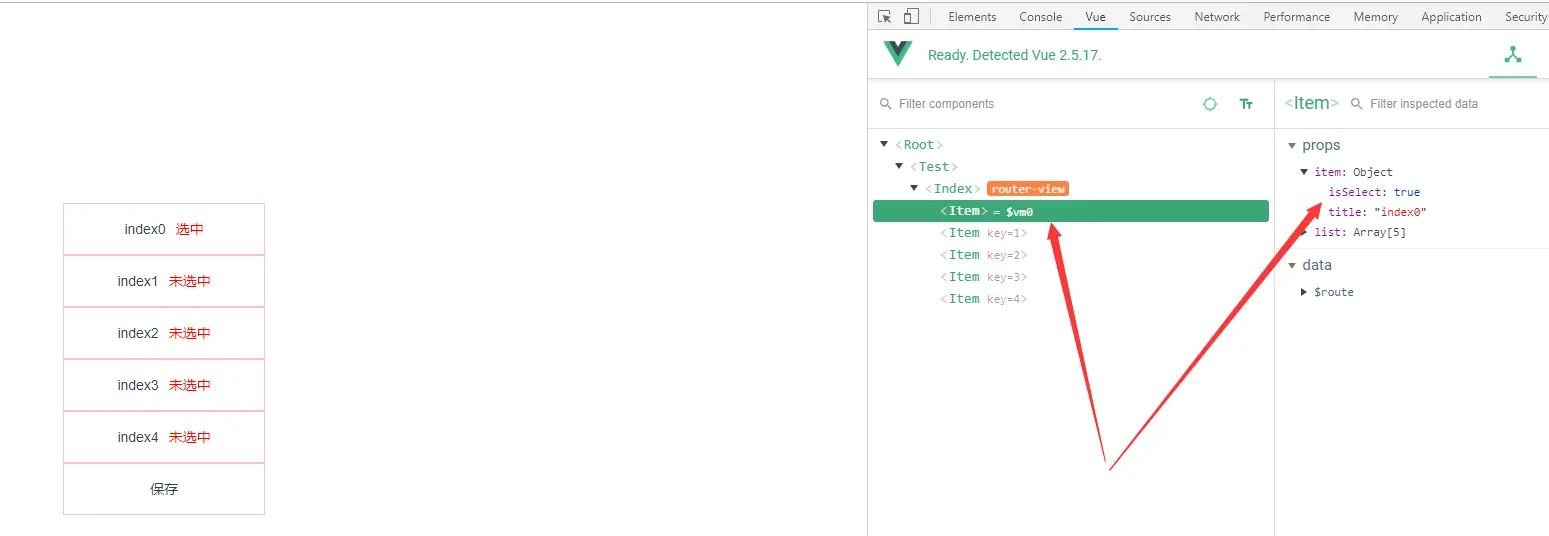 <span @click="changeItemValue(item)">{{item.isSelect ? '选中' : '未选中'}}</span>