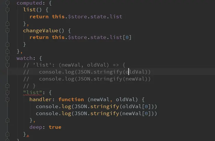 如上图, 计算属性的值正常更新了, 通过deep watch的值, 两个都是新的值, 无法取得oldVal, 而不用deep的时候, 这个watch根本不会触发。
