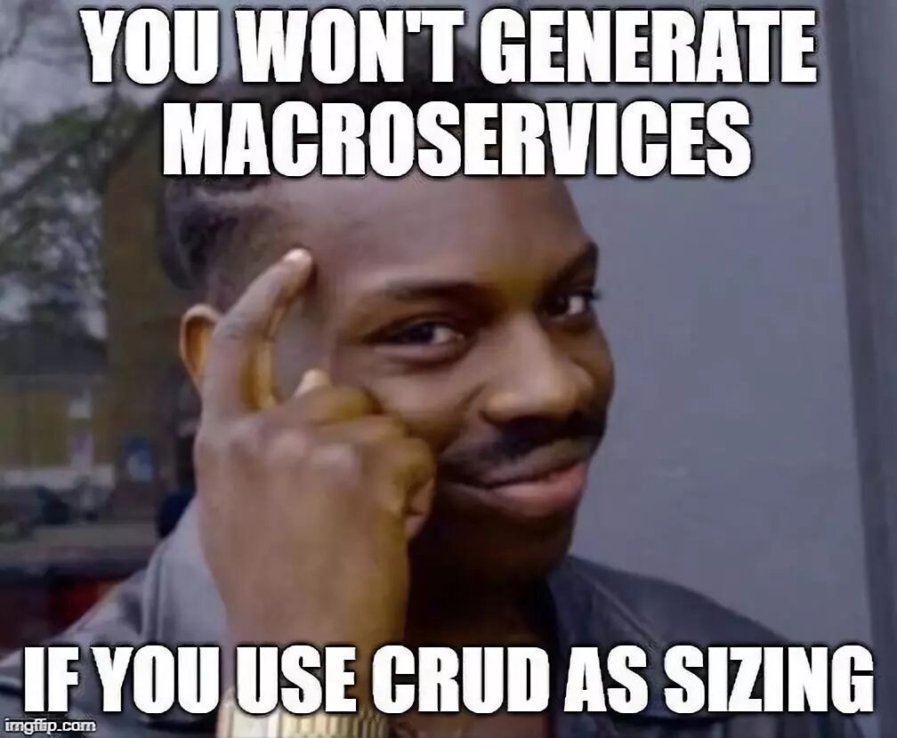 在此,我要做一个大胆断言:所有微服务的最大操作数量必须遵循CRUD标准。以这个为前提,不需要再考虑微服务应该有多大颗粒。