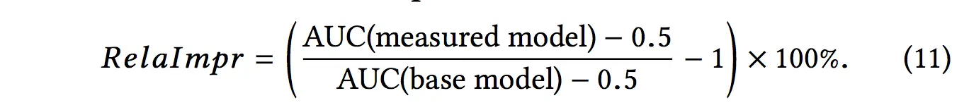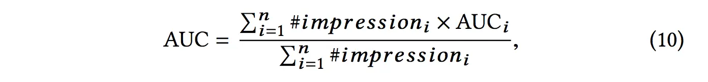 我们一般使用AUC进行结果评估,阿里使用了weighted AUC,还提出了另一种名叫RelaImpr的指标。
