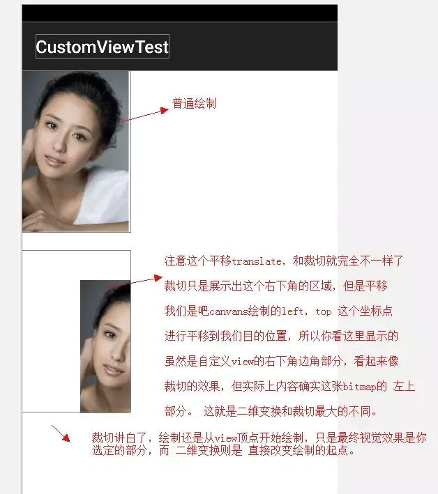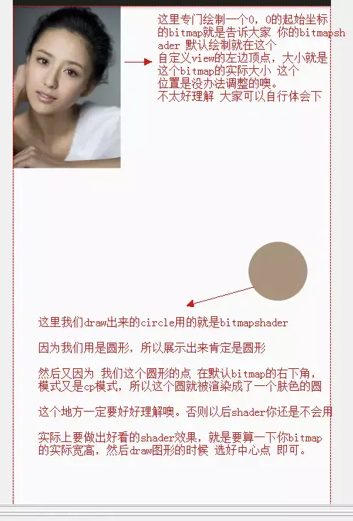 好,现在我们说 只想看到丫丫的脸,不想看其他的,哪我们既然知道丫丫的bitmap绘制区域是在view的左上角, 宽高我们也知道 是366和550,所以大概估算一下, 我们圆心的位置 180,250,半径就是150左右