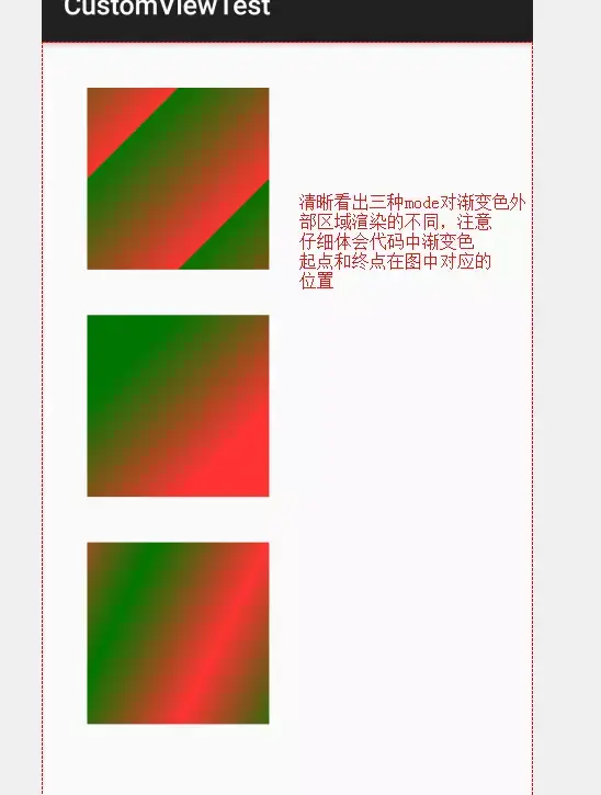 //只有你Gradient的两点在 你绘制范围之内的时候才能见到三种不同 Shader.TileMode的效果