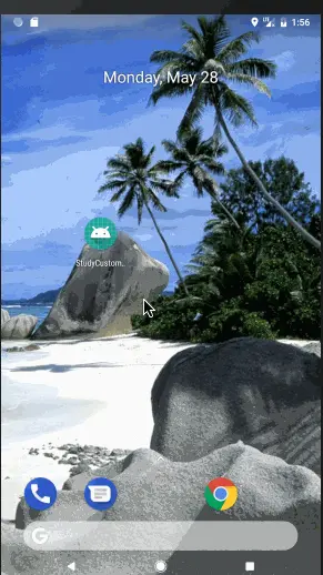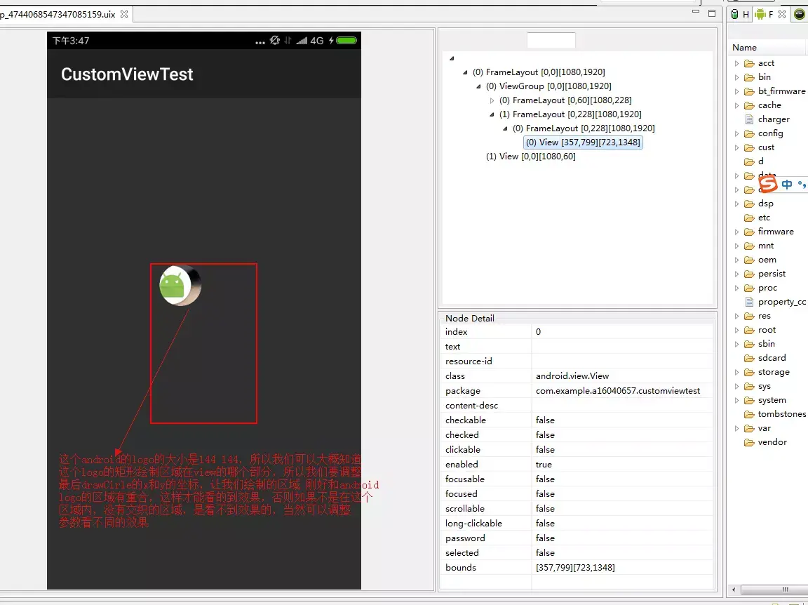 然后我们写一段代码在展示这张图片到我的手机里,我的手机当然也是xxhdpi的手机,这样图片不会缩放,我们理解起来容易