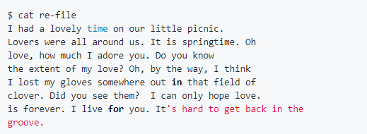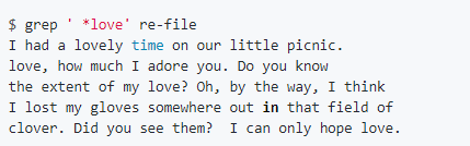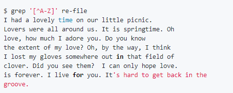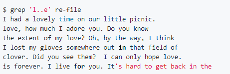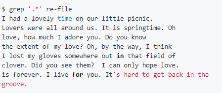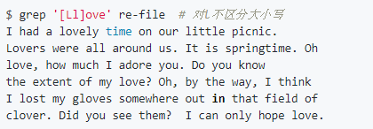 正则表达式一般以文本行进行处理,在进行下面实例之前,先为grep 命令设置--color 参数: